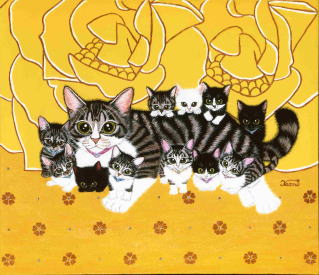 は、2015年3月31日めでたく一瀬家の家族となり、4月1日に5匹の 子猫を生みました。 宝石のようにかわいい子猫たちは天然石にちなんで白黒猫ルチル♀、黒猫ルビー♀、黒猫サファイヤ♂、白黒猫マリン♀、白黒猫パール♂と命名。
